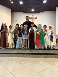 A proposta do evento foi proporcionar aos alunos da Educação Infantil e do Ensino Fundamental I uma vivência especial de fé e alegria, convidando-os a se caracterizarem como o santo ou santa de sua devoção. A celebração aconteceu na capela do colégio e contou com a presença dos professores, pais, equipe de coordenação e, é claro, das crianças, que foram as grandes protagonistas do dia.